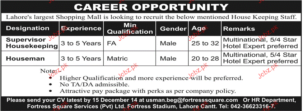 Apply as per details in job advertisement. Login to view further details of how to apply via https://www.jobz.pk online.