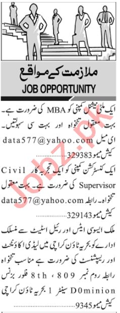 Supervisor, Lady Accountant, Assistant Accounts Officer, Engineer, Civil Engineer, Electrical Engineer, Electronics Engineer, Electrical Project Manager, Finance Manager, Accountant, Auditor, Accounts Officer, Assistant Accounts seeks in well established companies.