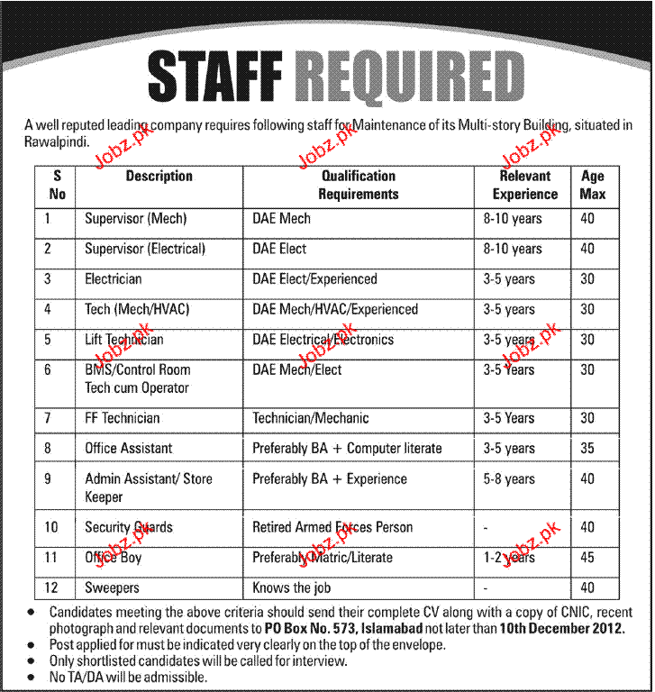 Apply as per details in job advertisement. Login to view further details of how to apply via https://www.jobz.pk online.