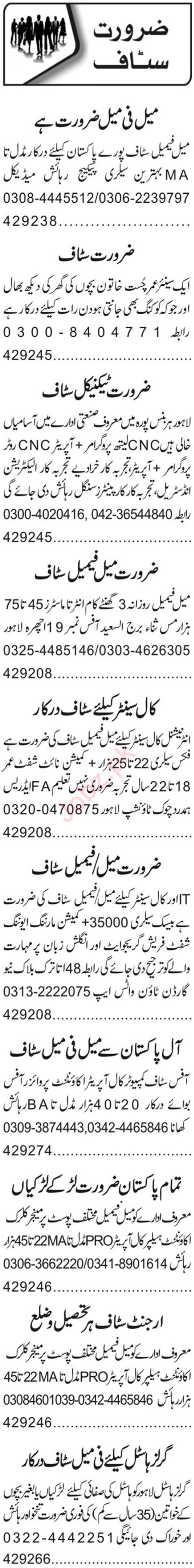 Private Company Multan, multan Punjab Pakistan invites applications from eligible candidates for the post of manager, computer call operator, female staff, helper, accountant, clerk, male staff, office boy, account supervisor, technical staff, aya and call operator as per advertisement of April 4, 2023 published in daily Roznama 92 News Newspaper. Persons with Middle, Intermediate, Master, Matric and Bachelor etc. education can apply.