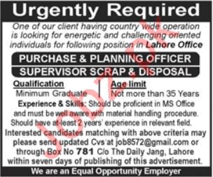Supervisor, Purchase & Planning Officer Jobs 2019