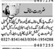 Vacant posts including sanitary worker, female supervisor, driver, hostel staff, nursing staff, guard, supervisor and cook are announced in Nursing College Lahore, lahore Punjab Pakistan as per 4 July 2025 advertisement in daily Dunya Newspaper. Preferred Education is Matric, Primary, Intermediate and Middle etc.