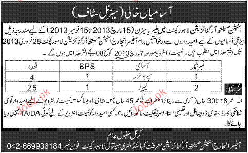 Apply as per details in job advertisement. Login to view further details of how to apply via https://www.jobz.pk online.