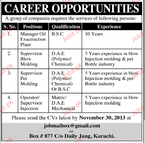 Apply as per details in job advertisement. Login to view further details of how to apply via https://www.jobz.pk online.