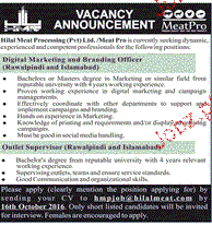 Apply as per details in job advertisement. Login to view further details of how to apply via https://www.jobz.pk online.