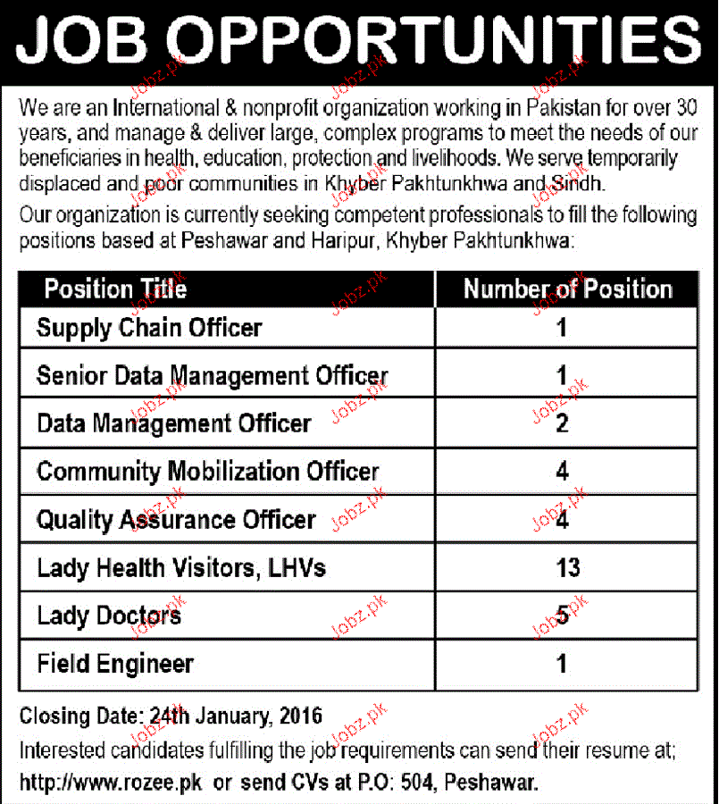 Apply as per details in job advertisement. Login to view further details of how to apply via https://www.jobz.pk online.