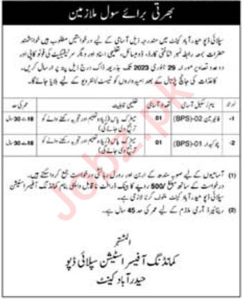 Station Supply Depot is a subordinate of Pakistan Army Hyderabad, hyderabad Sindh Pakistan invites applications from eligible candidates for the post of chowkidar and fireman as per advertisement of January 15, 2023 published in daily Khabrain Newspaper. Preferred Education is Matric etc.