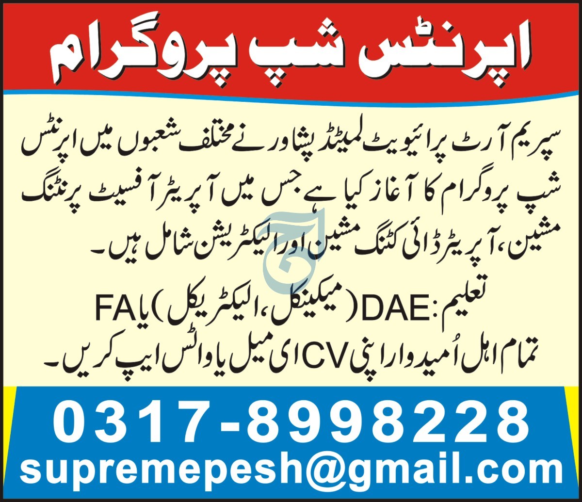 Latest Supreme Art Pvt Ltd Management Posts Peshawar 2025