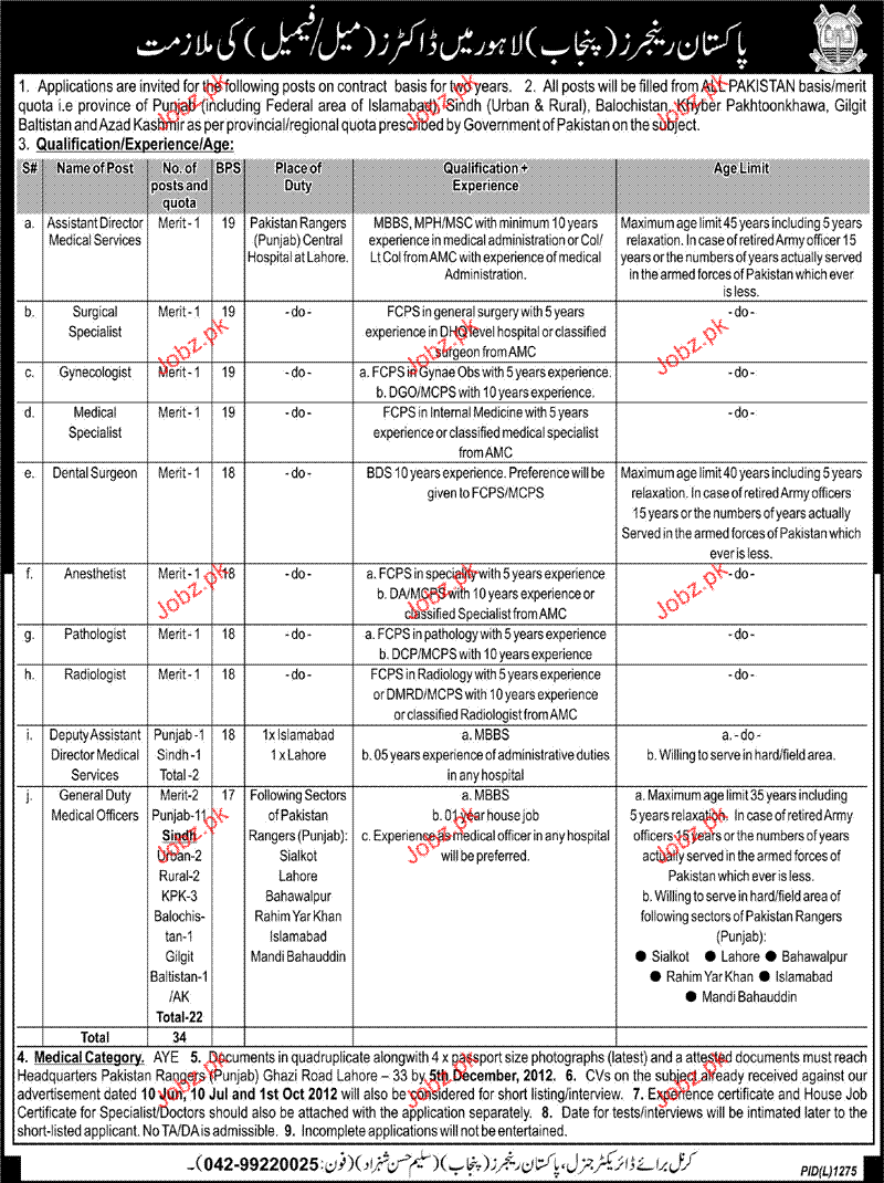 Apply as per details in job advertisement. Login to view further details of how to apply via https://www.jobz.pk online.