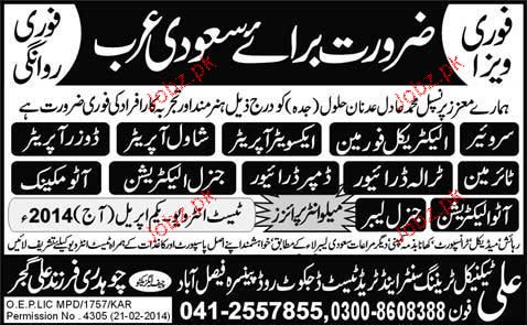 Surveyors, Electrical Foreman, Shawal operators Wanted