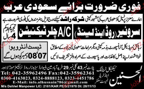 Surveyors Road & Land And AC Chiller Technicians Wanted