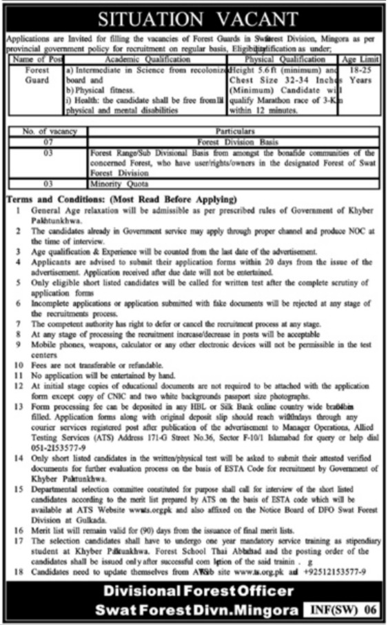 Swat Forest Division Mingora Jobs 2022 For Forest Guard