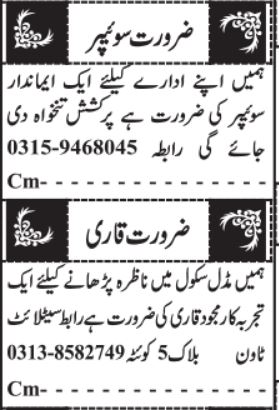 Private Company is looking for candidates for following posts as per job advertisement published in daily Jang Newspaper of May 17, 2022 for location Quetta, quetta Balochistan Pakistan: