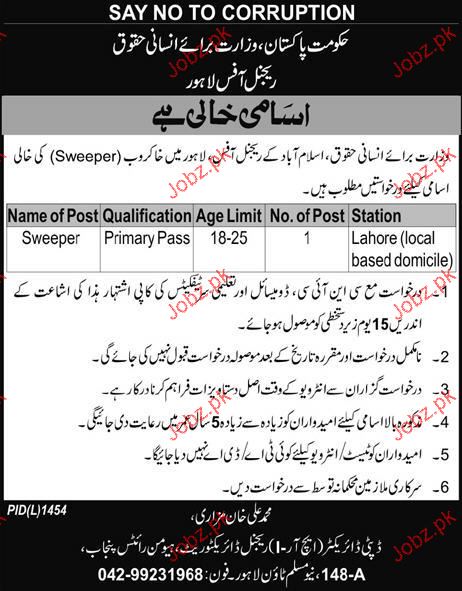 Latest Ministry of Human Rights Labor Posts Lahore 2025