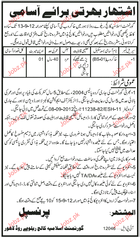 Apply as per details in job advertisement. Login to view further details of how to apply via https://www.jobz.pk online.