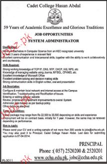 System Administrators Job In Cadet College Hasan Abdal