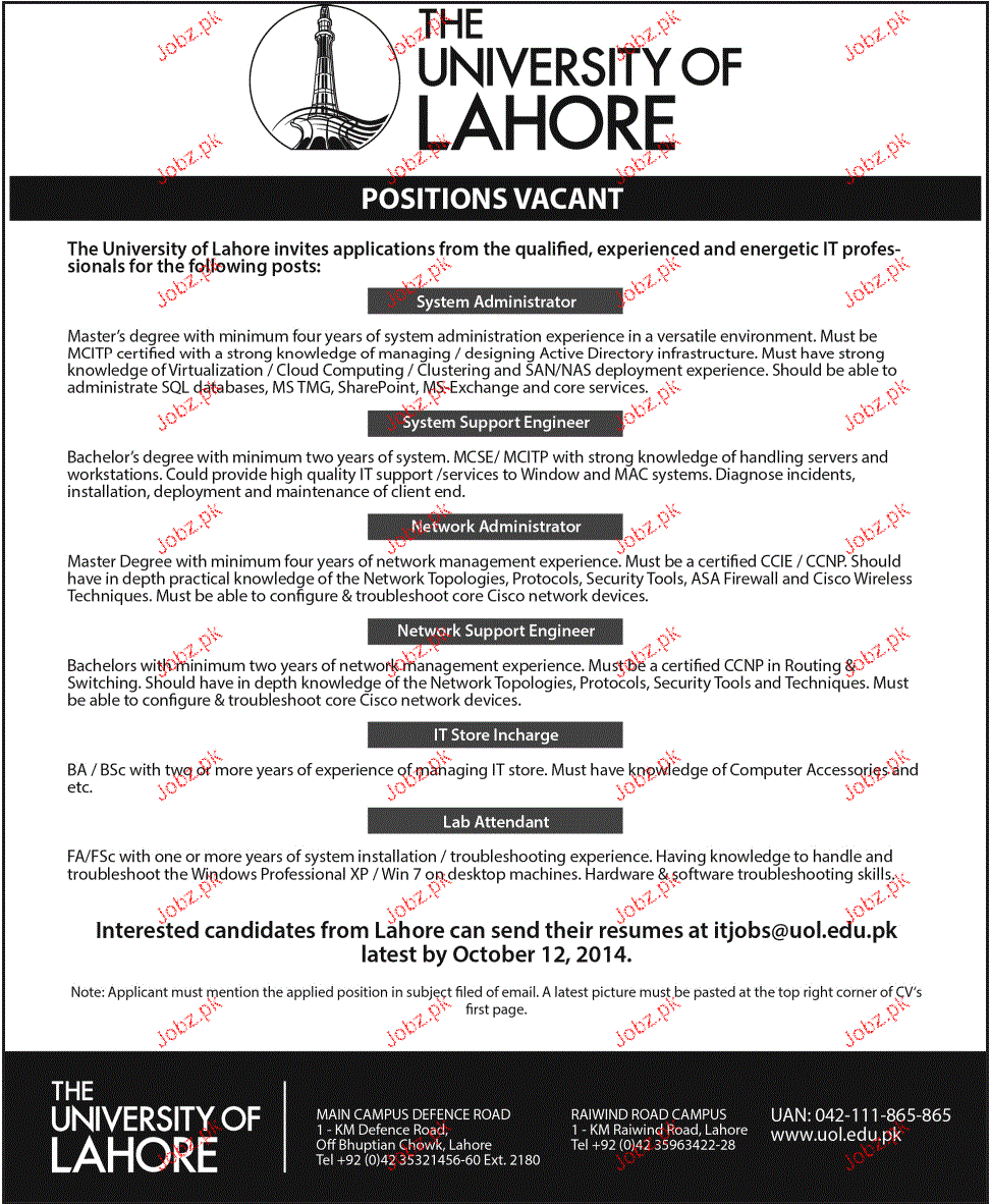 Apply as per details in job advertisement. Login to view further details of how to apply via https://www.jobz.pk online.