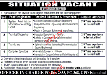 System Administrators, Technical Supervisors Wanted