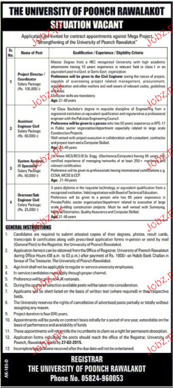Apply as per details in job advertisement. Login to view further details of how to apply via https://www.jobz.pk online.