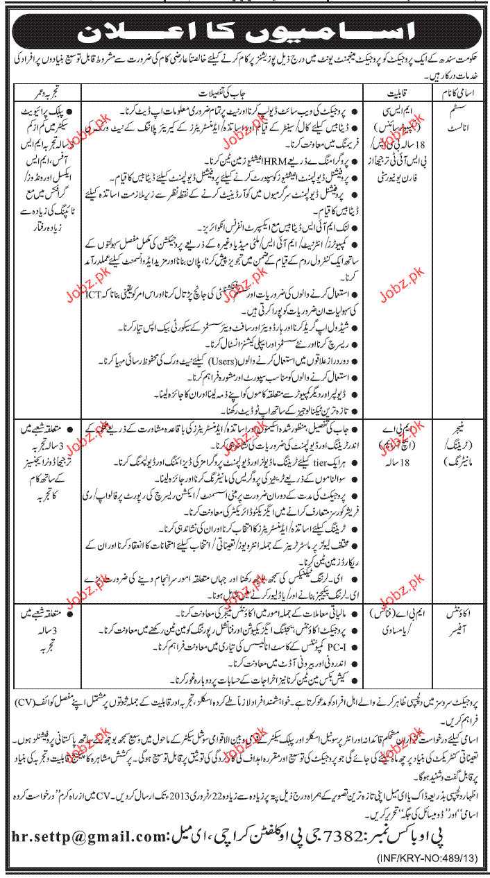 Apply as per details in job advertisement. Login to view further details of how to apply via https://www.jobz.pk online.
