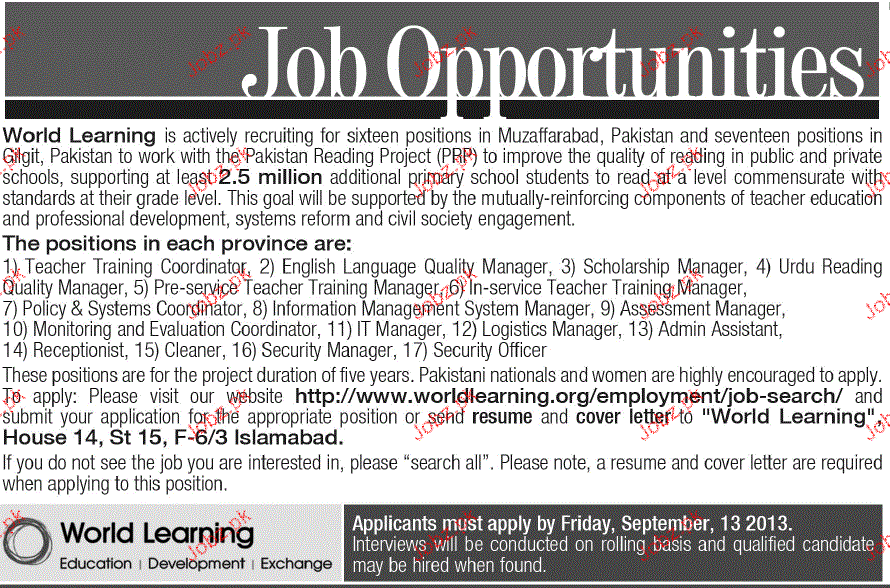 Apply as per details in job advertisement. Login to view further details of how to apply via https://www.jobz.pk online.