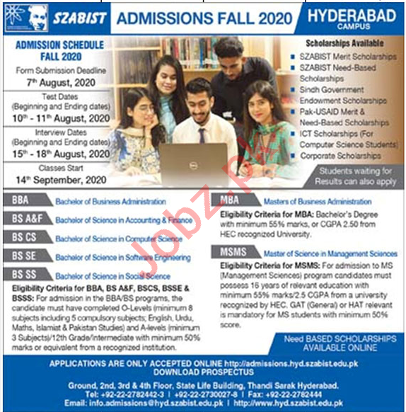 SZABIST University Admissions 2020 for Masters