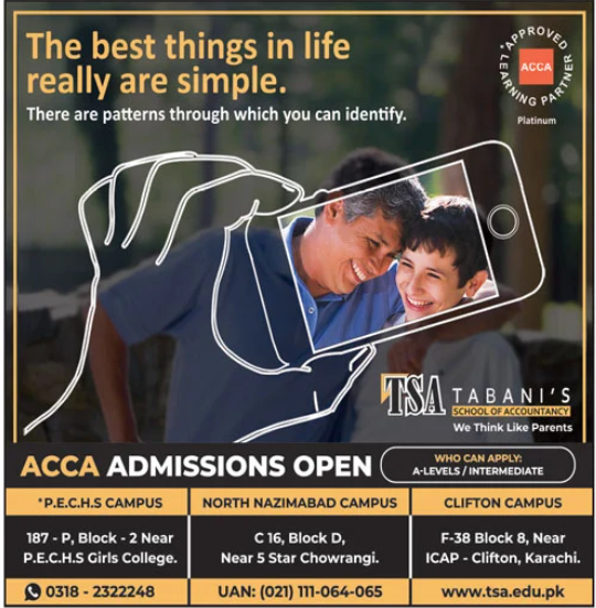 Tabanis School of Accountancy is a privately-owned tertiary institution is a privately-owned tertiary institution which provides professional chartered accountancy education in Karachi has announced admission in ACCA. Read newspaper ad for exact details.