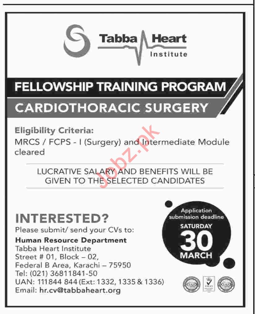Vacancies in Tabba Heart Institute Advertisement March 2019