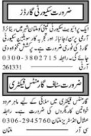 Tailor Master & Security Guard Jobs 2021 In Multan