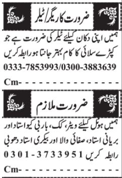 Tailor Master & Waiter Jobs 2023 In Quetta
