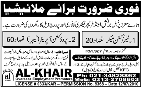 Apply as per details in job advertisement. Login to view further details of how to apply via https://www.jobz.pk online.