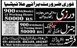 Tailors and General Workers are required in Malaysia