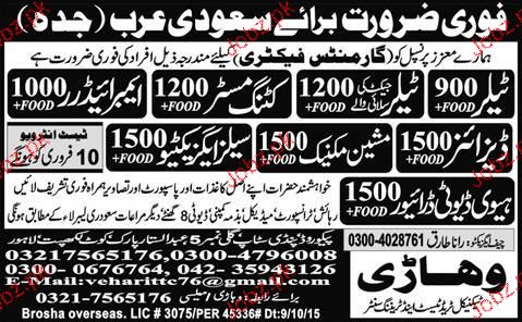 Tailors, Cutting Masters, Sales Executives Job Opportunity