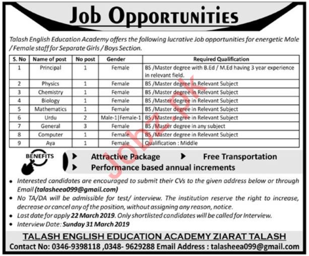 Vacancies in Talash English Education Academy TEEA Advertisement March 2019