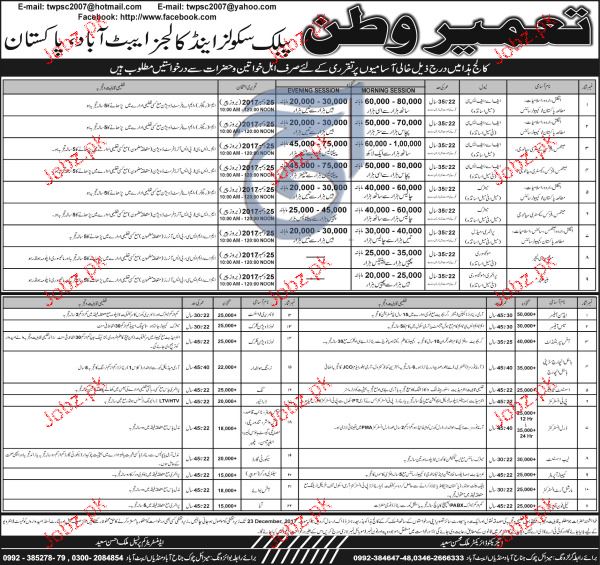 Latest Tameer E Watan Public School & Colleges Teaching Posts Abbottabad 2025