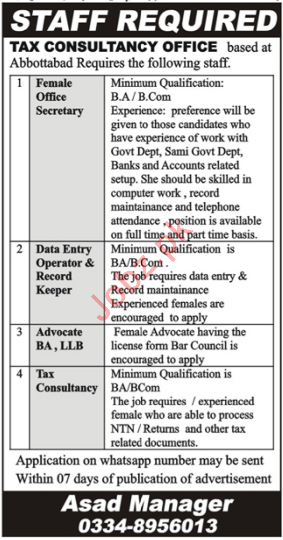 Apply as per details in job advertisement. Login to view further details of how to apply via https://www.jobz.pk online.