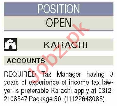 Tax Manager & Tax Lawyer Jobs 2020 In Karachi