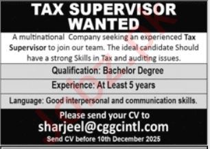 Tax Supervisor Jobs At Multinational Company In 2025