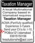 Taxation Manager is required in Islamabad.