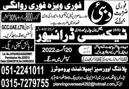 Planning Overseas Employment Promoters is looking for candidates for following posts as per job advertisement published in daily Express Newspaper of August 18, 2022 for location Dubai, dubai Dubai: