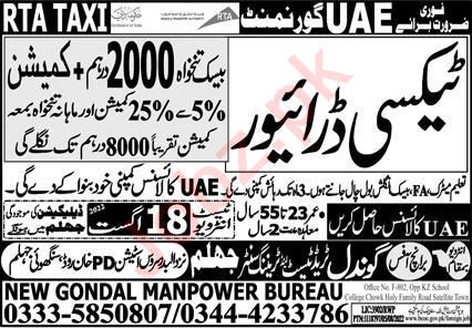 Gondal Trade Test & Training Center UAE, dubai UAE invites applications from eligible candidates for the post of taxi driver and driver as per advertisement of August 14, 2022 published in daily Express Newspaper. Preferred Education is etc.
