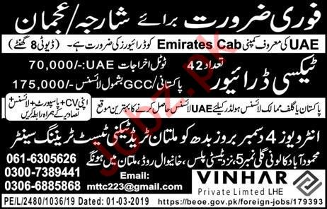 Latest Vinhar Pvt Limited Driving Posts Sharjah 2025