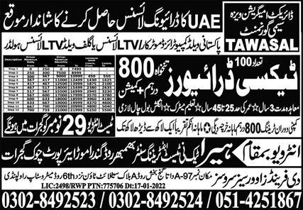 The Friends Overseas Services Abu Dhabi, abu dhabi UAE invites applications from eligible candidates for the post of taxi driver as per advertisement of November 25, 2022 published in daily Express Newspaper. Candidates with Intermediate and Matric etc. educational background will be preferred.