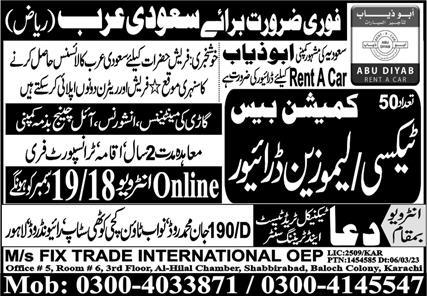 Dua Technical Trade Test & Training Center Riyadh, jeddah Saudi Arabia invites applications from eligible candidates for the post of driver, taxi driver, limousine driver and ltv driver as per advertisement of December 14, 2023 published in daily Express Newspaper. Candidates with Matric and Intermediate etc. educational background will be preferred.