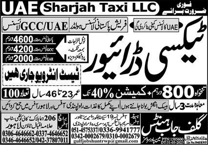 Vacant posts including ltv driver, taxi driver and driver are announced in Gulf Job Hunts Manpower Services Sharjah, abu dhabi UAE as per 3 January 2024 advertisement in daily Express Newspaper. Intermediate and Matric etc. educational qualification will be preferred.