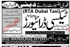 Taxi Drivers are required in RTA Dubai Taxi in Dubai. Recruiting Agency is Pease and Protective Overseas Employment Promoters. Send their CV with Confidence.