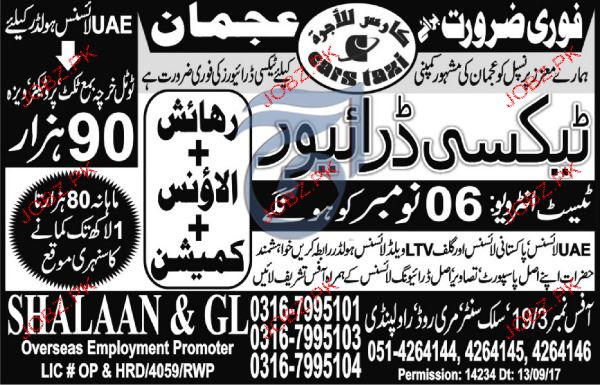 Latest SHALAAN & GL Overseas Employment Promoters Driving Posts UAE 2025