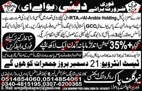 Taxi Drivers are required in Al Arabia Holding Company in Dubai Through New Gulf Recruitment Agency. Food, Medical and Residence will be provided by the Company. Test and Interview will be held on 21 December 2017.