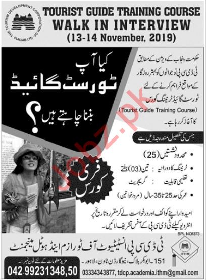 TDCP Institute of Tourism & Hotel Management has announced Free Course in Tourist Guide Training Course in Lahore. Limited seats are available. Duration of Course will be 3 months. Read newspaper ad for exact details.