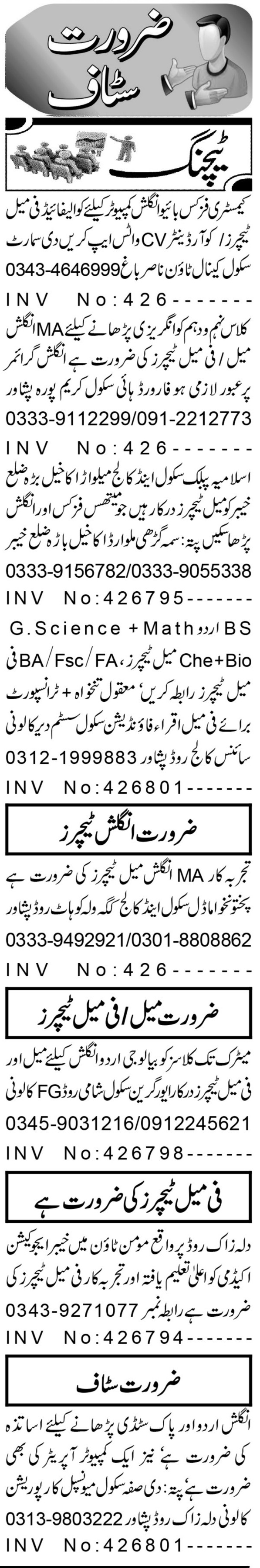 Private School invites applications for job positions advertised in daily Aaj dated 22 November 2023 for following vacancies in Peshawar, peshawar Khyber Pakhtunkhwa KPK Pakistan.